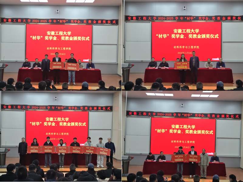 会上宣读了2024至2025学年“材华”奖学金、奖教金的表彰决定。与会领导为获奖师生颁奖。获奖代表、龙建周博士和新能源材料231班杨平安同学分别代表获奖师生进行发言。