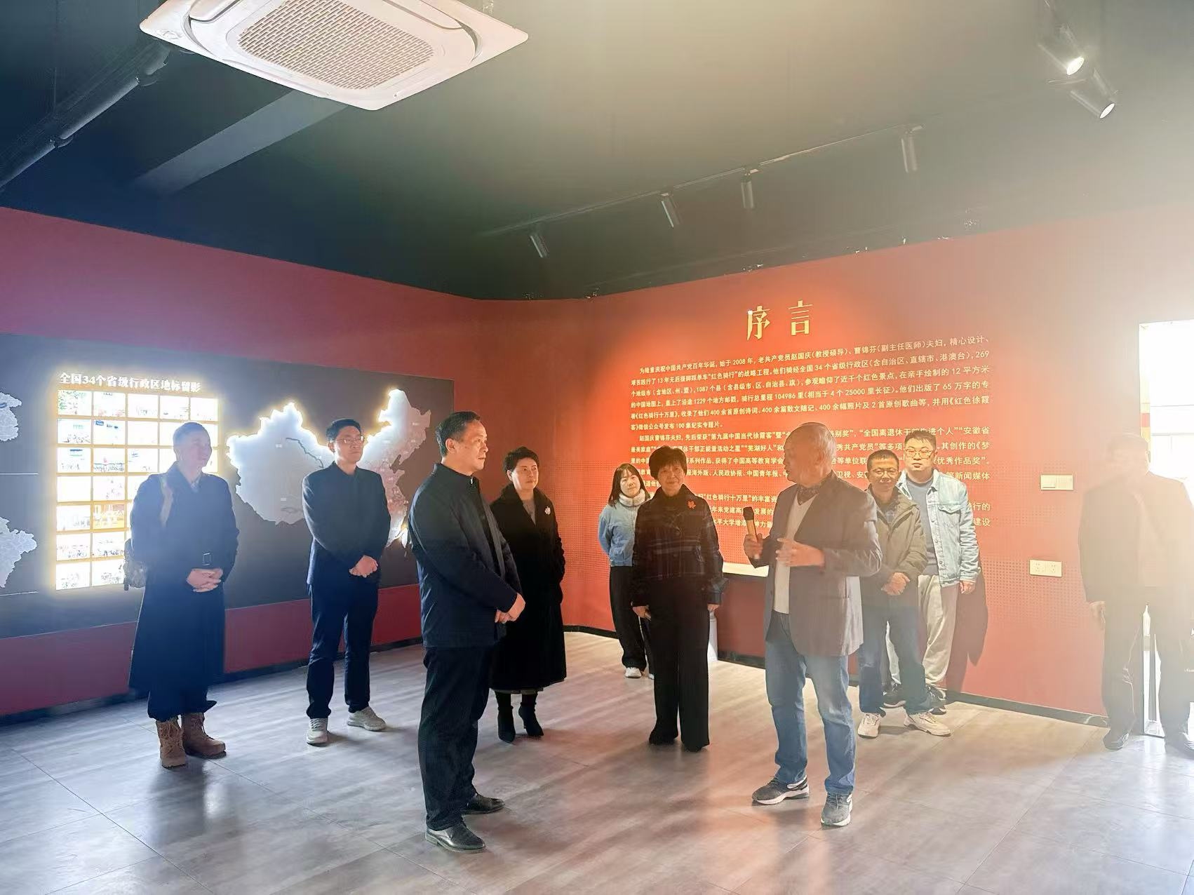 本网讯 12月16日,芜湖市退役军人事务局党组书记、局长李达志,党组成员、副局长陈中信、芜湖市退役军人服务中心主任姜宗伟一行到我校红色“骑”迹体验馆现场参观调研。校工会主席、离退休党委书记张寅红,中国当代徐霞客、红色骑行工作室负责人赵国庆、曹锦芬陪同参观。
