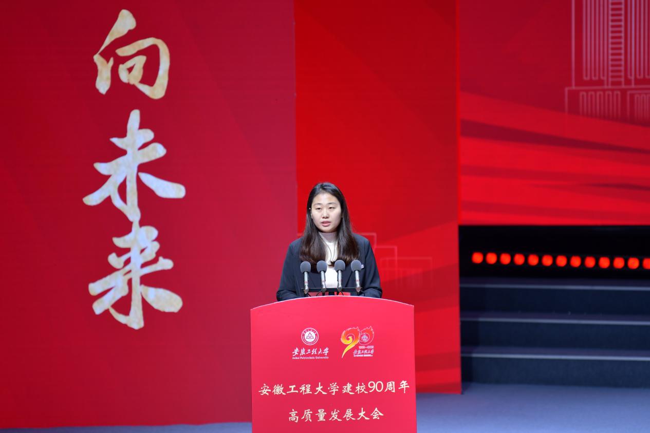 人工智能学院青年教师方明代表全体教师发言,以“传承、创新、担当”诠释新时代教育工作者的使命初心。材料与化工专业23级硕士研究生尹佳佳作为在校学生代表发言,分享了从本科到硕士七年校园生活中刻苦钻研的成长点滴和成果收获。