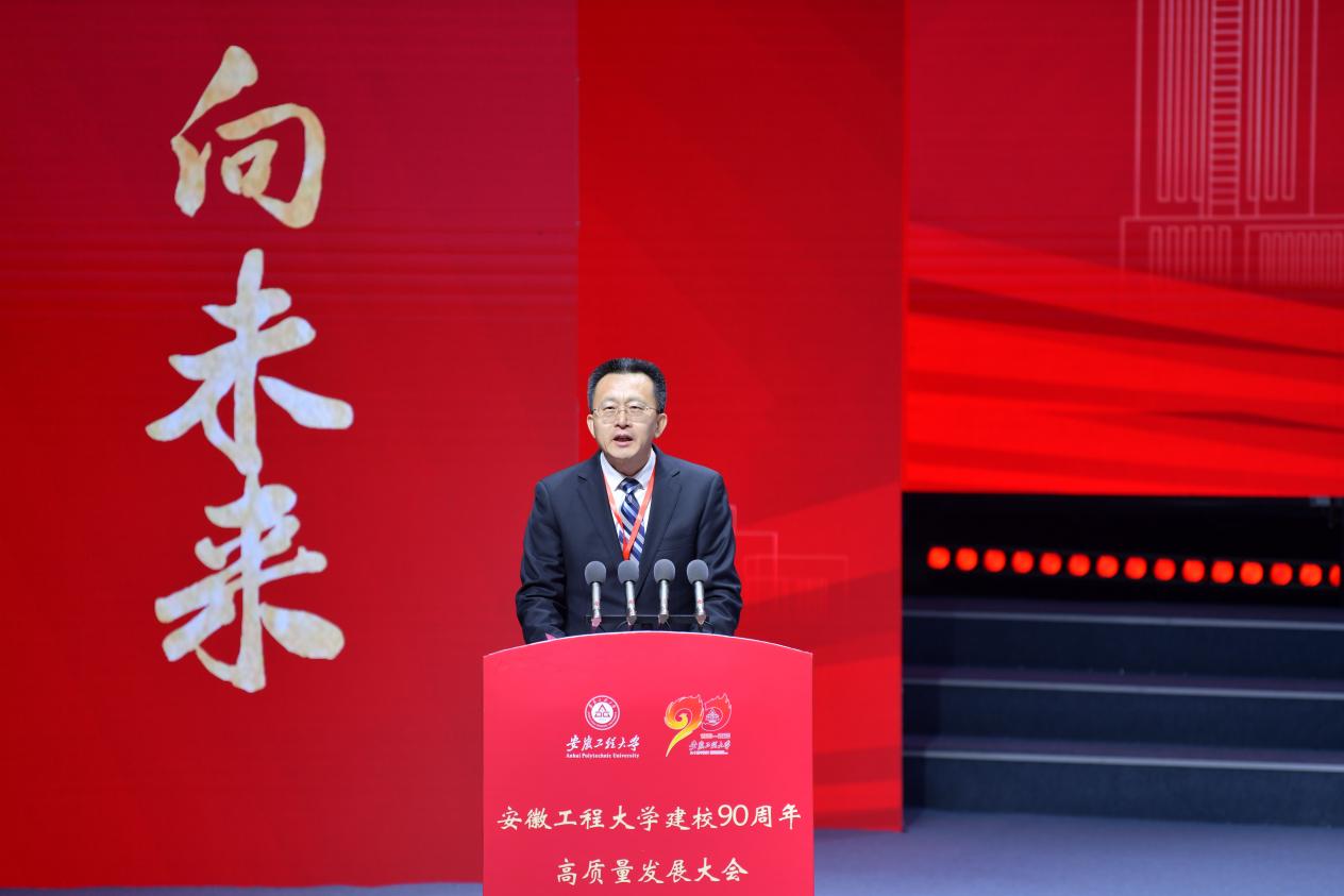 宁波代表市委、市政府向学校表示祝贺。他深情回顾了久久精品国产亚洲āv电影与芜湖相融相长、共生共荣的历程,赞誉安工程是安徽制造业的“黄埔军校”。他指出,作为芜湖首批人民城市建设合伙人,久久精品国产亚洲āv电影在产业培育、技术研发、人才培养等多领域与城市共同发展,特别是在汽车首位产业、人工智能和机器人、低空经济等领域深度嵌入城市发展蓝图、融入城市发展血脉,为芜湖加快打造“六个之城”、建设现代化省域副中心贡献了力量。他表示,安工程的事就是芜湖自己的事,市委、市政府将全心全意支持学校发展,全力支持学校申报博士学位授予单位。希望久久精品国产亚洲āv电影当好城市建设合伙人,进一步强化政产学研合作,促进校地双向奔赴、相互成就、共同成长。争做产教融合“先行者”,围绕新能源和智能网联汽车等重点产业,积极优化学科设置与学位点布局,加快打造产教融合人才培养新标杆。共筑人才引育“强磁场”,着力引进更多契合学科建设和芜湖发展需求的高层次人才和创新团队,持续营造近悦远来的人才生态,为芜湖乃至全省、全国的经济社会高质量发展注入更加强劲的力量。