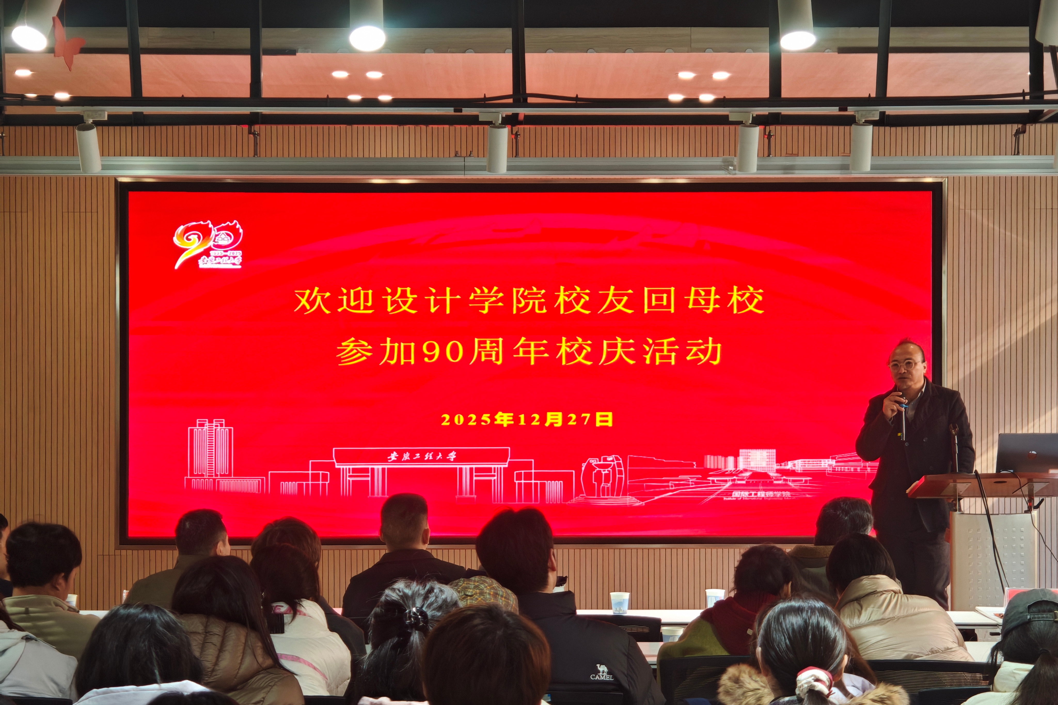 本网讯 为凝聚校友力量、共话行业发展、共谋学校高质量建设,12月27日,设计学院举办校友报告会与座谈会。校党委常委、副校长张开炳,学院领导班子与来自各界的优秀校友、师生代表齐聚一堂,以思想碰撞绘就发展蓝图,以校友情谊共庆母校华诞。