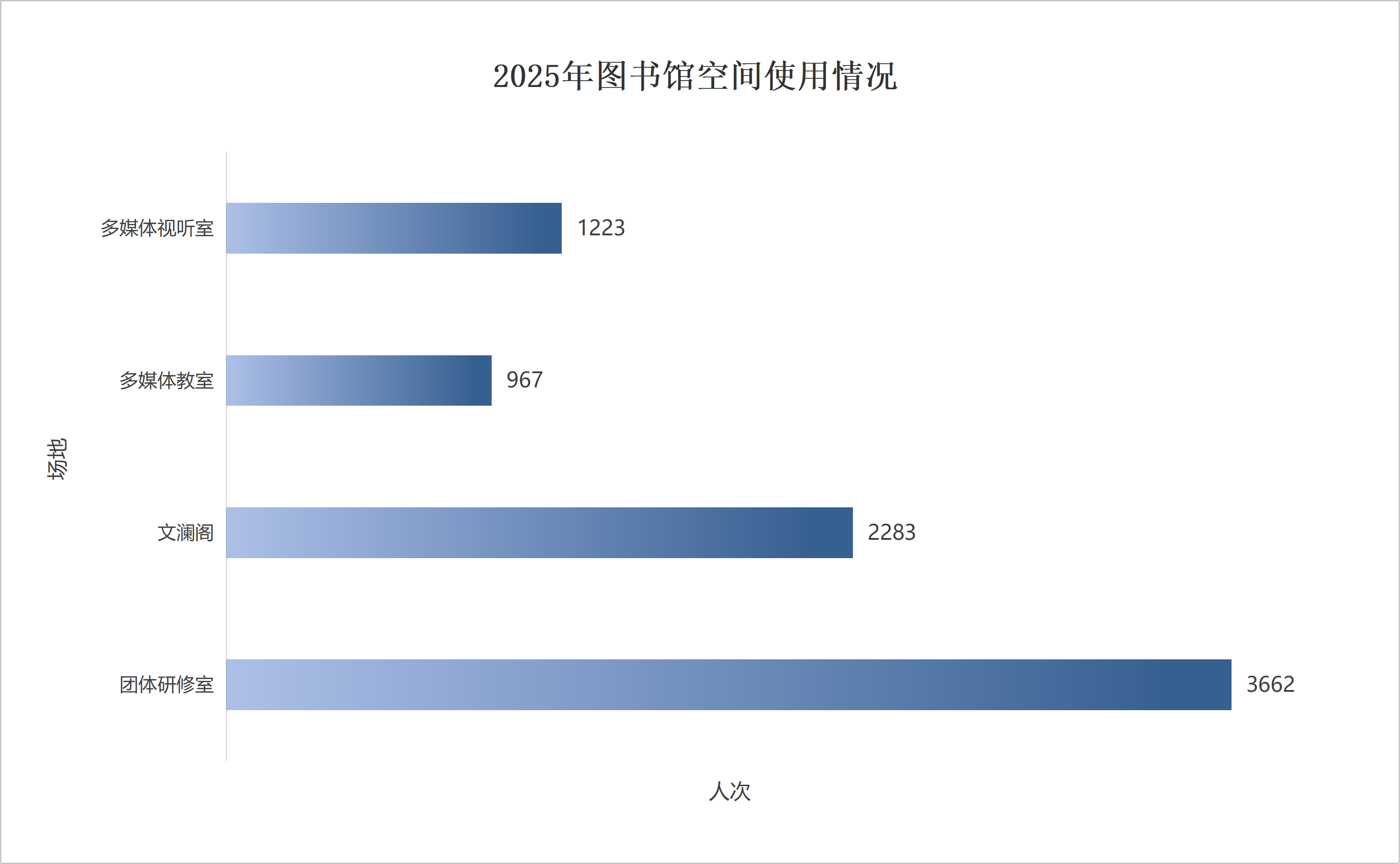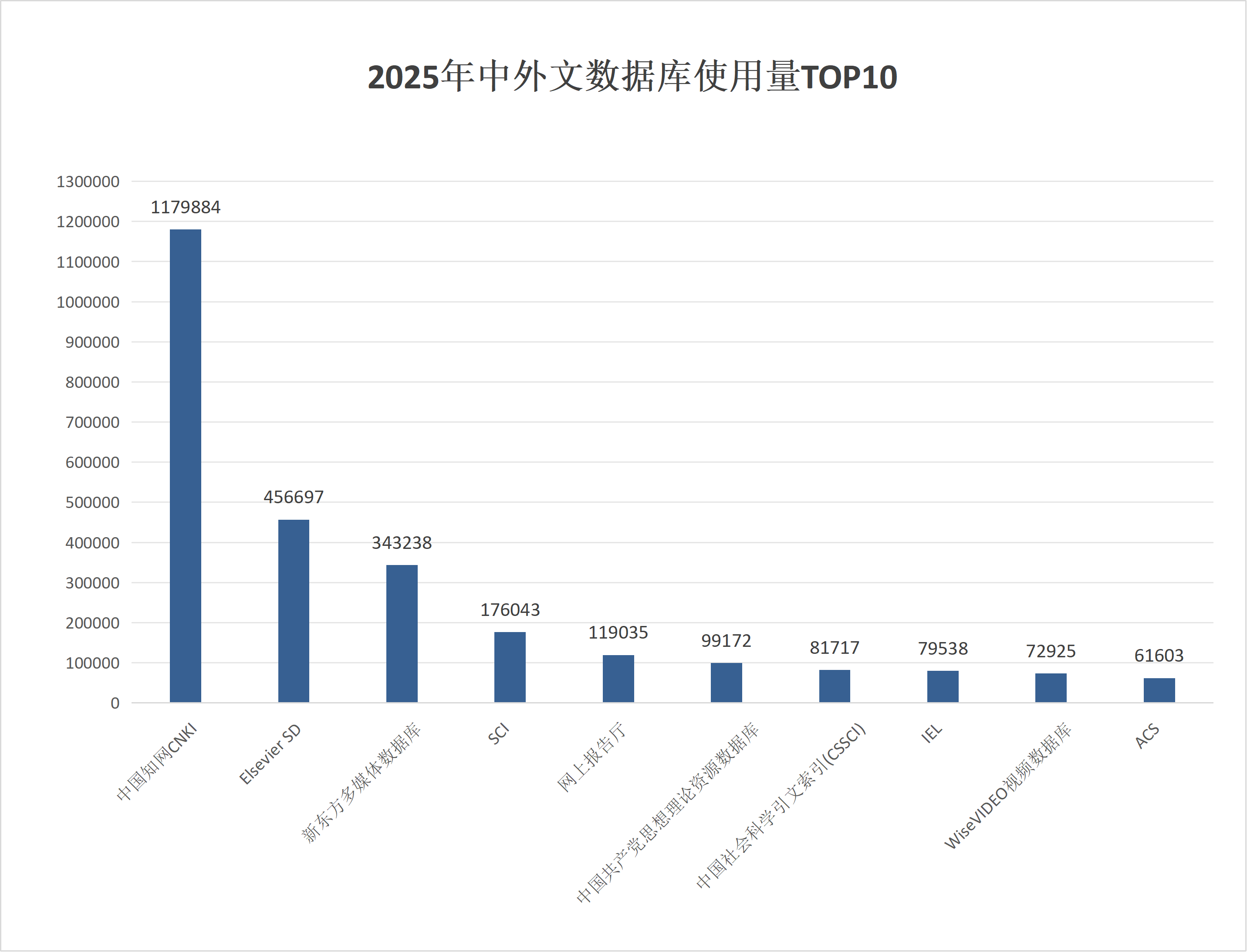 《报告》显示,2025年,图书馆借出图书16248册,较上年增长28.64%。工业技术类图书借阅量最高,达5362次,其次为文学类图书(3678次)和数理科学和化学(1081次),历史地理(1018次)与语言文字(876次)也有较高需求。整体趋势呈现以专业学科为核心、辅以人文阅读的特点。社会科学类图书占比54%,显示出读者对此类知识资源的较高关注度;自然科学类图书占比43%,同样保持稳定需求。移动图书馆年访问量4095415次。电子图书阅读量117574次,其中歌德电子书借阅机使用最为活跃,借阅量达54006,占阅读总量的46%。中外文电子资源总访问量约300万次 ,中国知网、Elsevier SD、新东方多媒体数据库、SCI、网上报告厅使用量位居前五;图书馆主页访问量781628人次,较上年增长23.88%。图书馆进馆人次达136万余人次,较上年增长36.81%。生均进馆次数排名前三的学院为:人工智能学院、数理与金融学院和建筑工程学院;图书馆团体研修室使用521场,3662人次。文澜阁使用24场,2283人次。多媒体教室使用14场,967人次。多媒体视听室使用24场,1223人次。