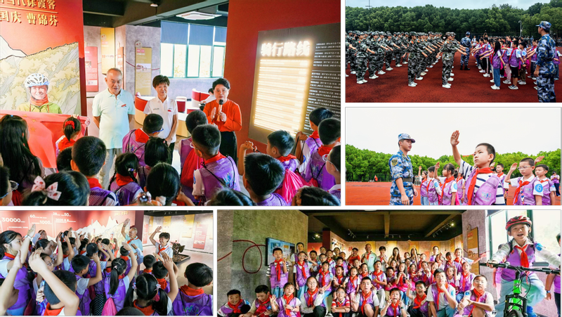 在红色“骑”迹体验馆,张寅红热情洋溢的致辞为活动拉开序幕。红领巾授予仪式上,学生代表为“中国当代徐霞客”赵国庆和曹锦芬佩戴上鲜艳的红领巾并敬以队礼。两位老党员动情讲述了他们十三年骑行十万里的红色历程,将孩子们带回到峥嵘岁月。一位小学生通过骑行模拟器体验后动情地说:“我深切感受到爷爷奶奶重走红色道路的艰辛,他们的坚持和勇气值得我们学习”。随后,同学们观摩新生军训科目展示,参训学生整齐划一的动作、铿锵有力的步伐和斗志昂扬的精神风貌深深感染了在场的小观众。