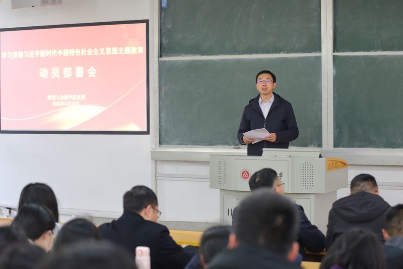 本网讯 4月26日,数理与金融学院党委学习贯彻习近平新时代中国特色社会主义思想主题教育动员部署会在2J107召开。会议由学院党委副书记、院长吴小太主持,学院师生党员参加了会议。