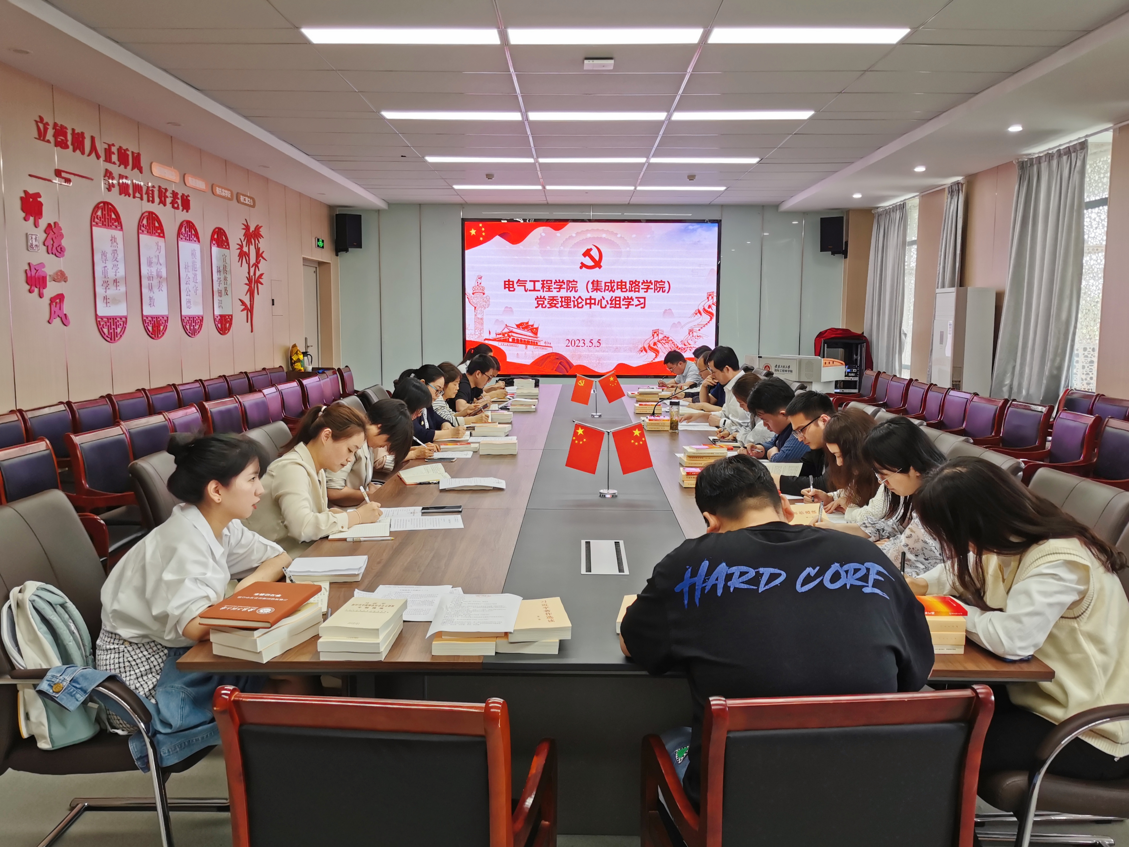 本网讯 5月5日,电气工程学院(集成电路学院)在学院206会议室开展“牢记嘱托再出发 踔厉奋发建新功”主题教育学习研讨,学院党委理论学习中心组成员、支部书记、科级干部、全体辅导员参会,会议由学院党委书记杨会成主持。
