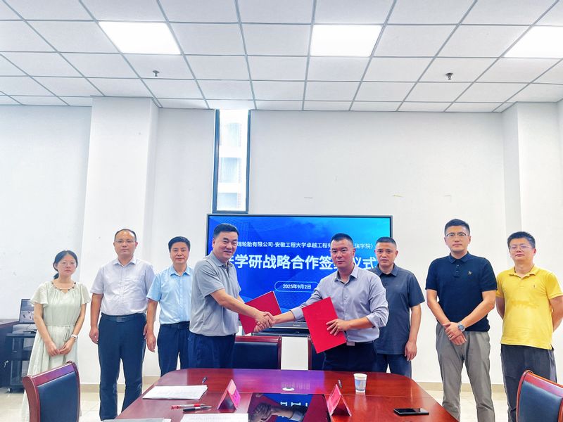本网讯 9月2日,卓越工程师学院(奇瑞学院)与深圳道瑞轮胎有限公司产学研签约仪式在国际工程师学院校区协同中心举行。深圳道瑞轮胎有限公司执行总裁易昊、华东区域销售总经理张俊、安徽区域总经理孙成,院党委副书记周伟、执行院长王建平出席签约仪式。签约仪式由周伟主持。