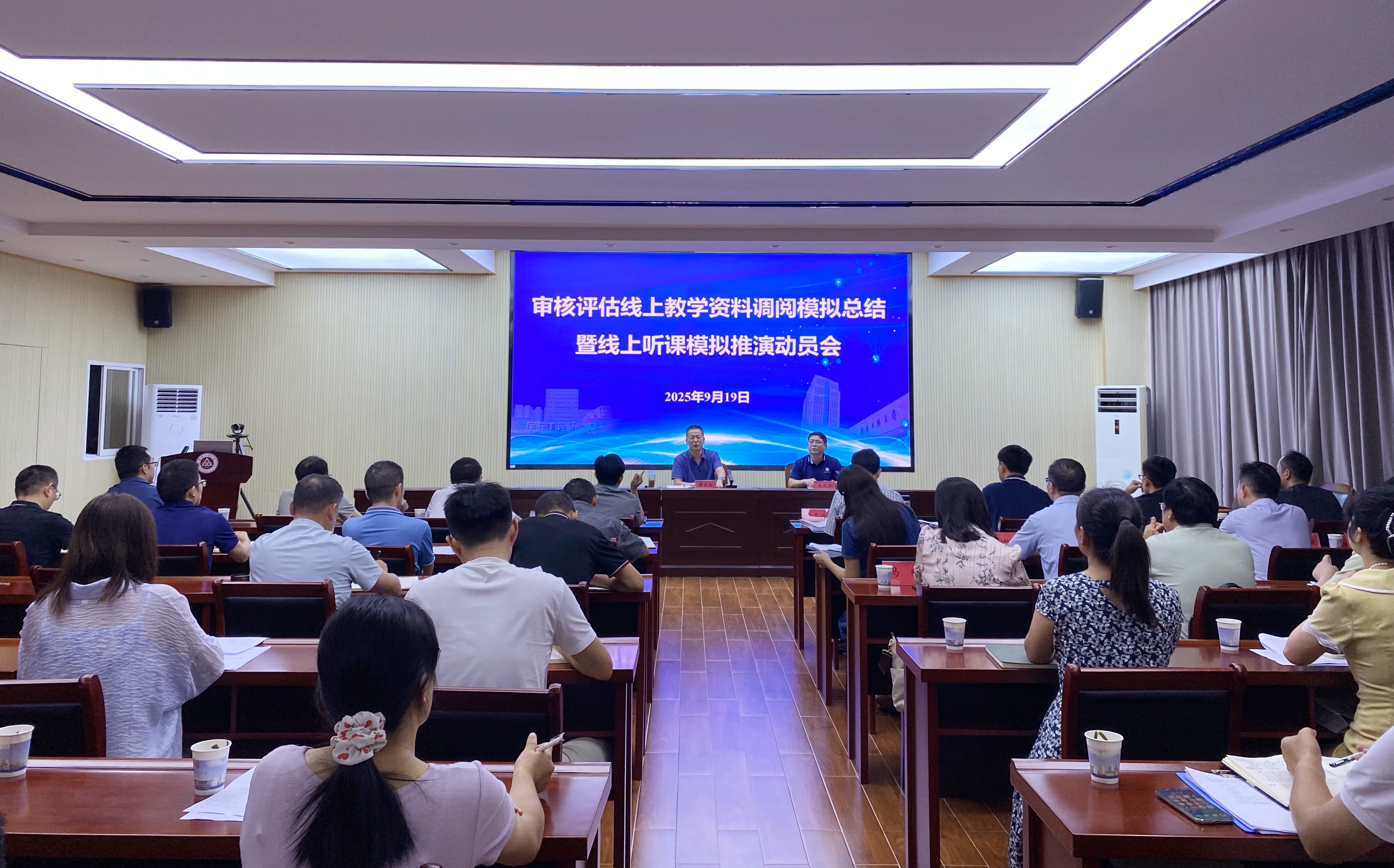 本网讯 9月19日,学校审核评估线上教学资料调阅模拟总结暨线上听课模拟推演动员会在A座1314会议室召开。校党委副书记、校长黄友锐,副校长王成军出席,有关职能部门和各学院负责人参会。会议由黄友锐主持。