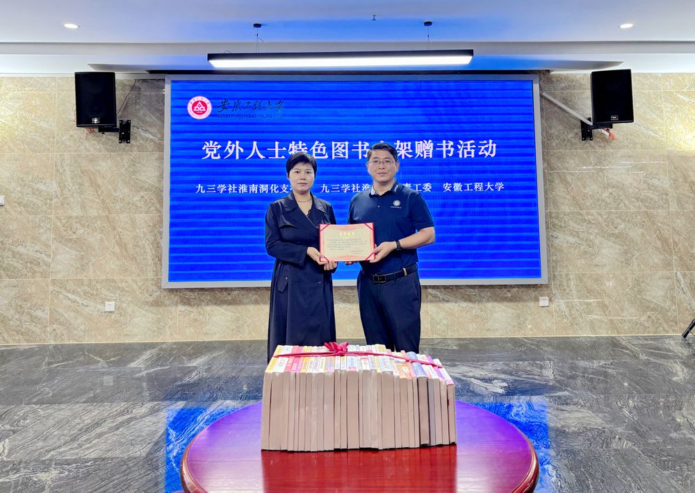 本网讯 9月21日,九三学社淮南洞化支委会、九三学社淮南市委青工委向学校党外人士特色图书专架捐赠图书仪式在学校图书馆文澜阁举行。九三学社安徽省委会常委、副校长王成军,九三学社淮南洞化支委会主委姚娜,九三学社淮南市委青工委主任蓝祝,九三学社芜湖市委副主委杨如意出席。