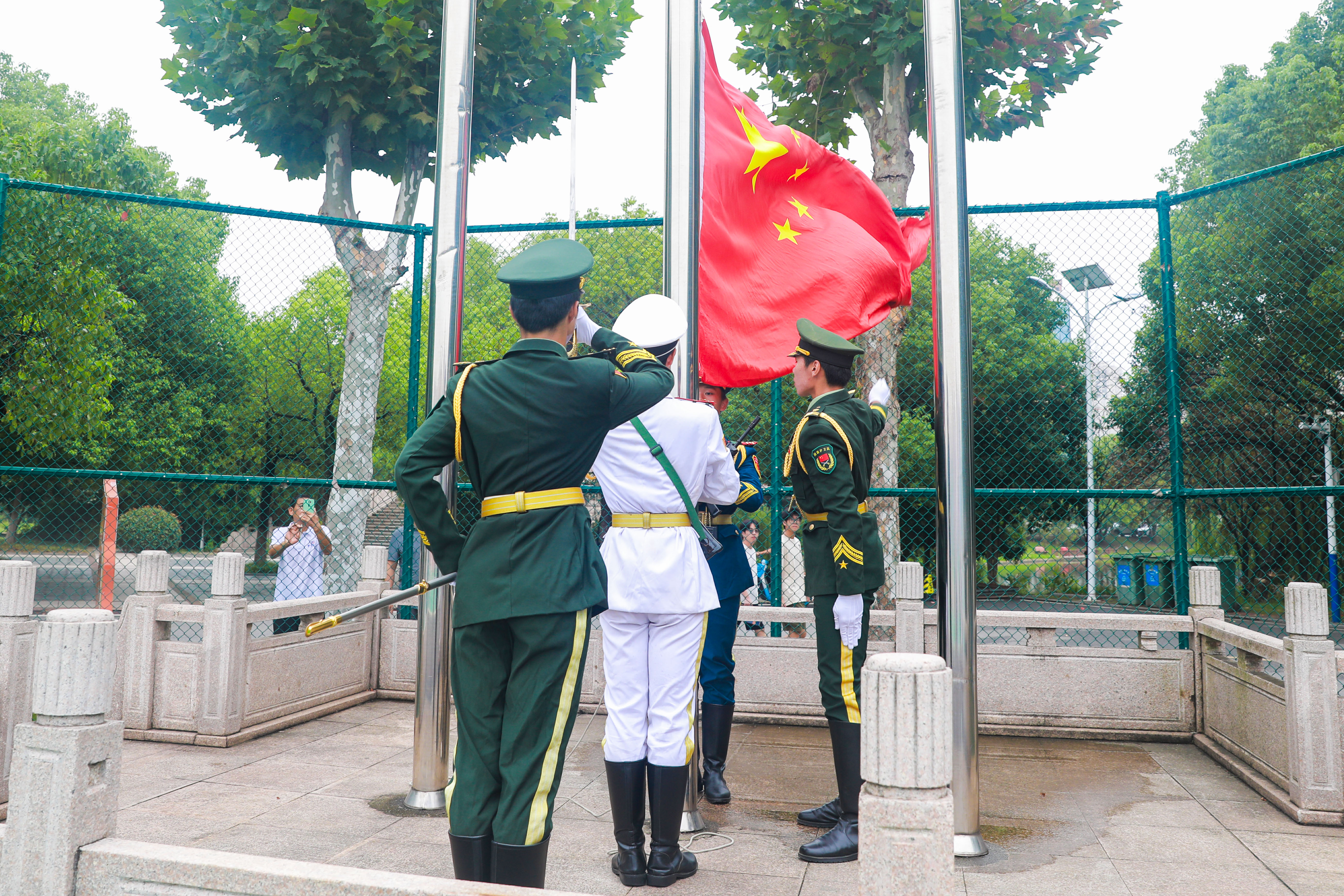 伴随着庄严的国歌声,五星红旗在国旗班的护卫下冉冉升起,开学典礼正式拉开帷幕。