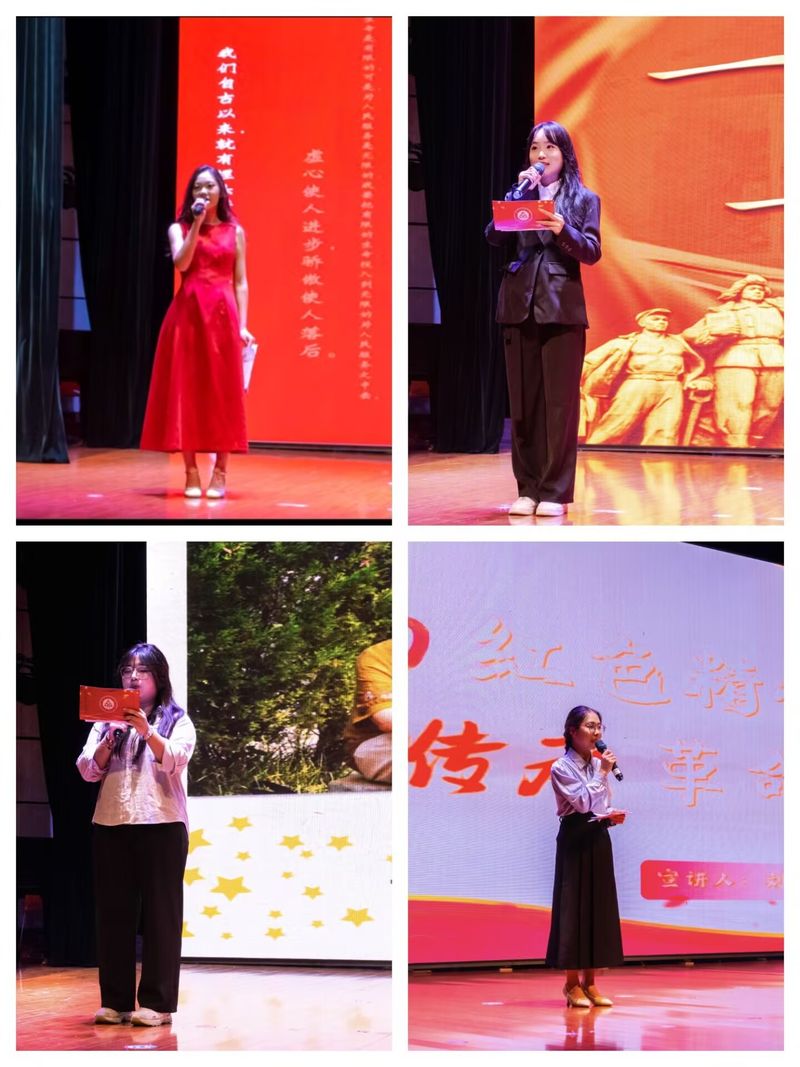 理论宣讲环节,机械与汽车工程学院刘欣雨以“青年说信仰”为主题,诠释了红色精神的时代价值;体育学院杨可以《一颗未寄出的糖一座长明的灯塔》为题,从平凡视角讲述了战斗英雄李家发的感人事迹;人工智能学院贾一诺在“青年说校史”中,生动回顾了学校九十载砥砺前行的发展历程;人工智能学院孙安娜通过“青年说榜样”,展现了身边的先进典型与榜样力量。