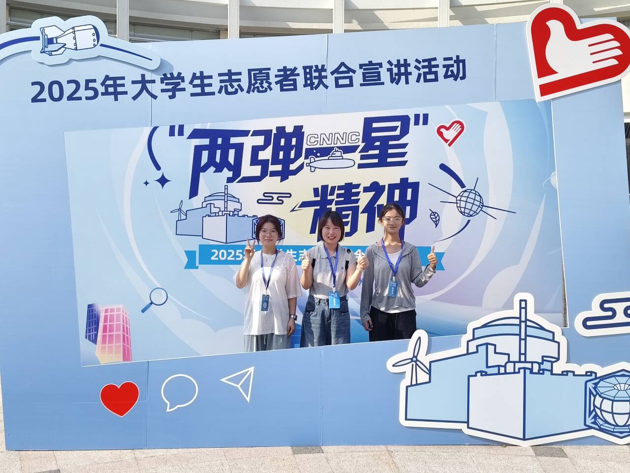 2025年大学生志愿者联合宣讲活动自开展以来得到众多高校响应,最终从5680支团队中遴选出1500支“两弹一星”精神志愿宣讲服务团队,青年学子分享实践心得,描绘青年理论宣讲蓝图。在联合宣讲活动中,志愿团成员聆听了中国工程院院士邱爱慈院士的专题分享、观摩了宣讲情景剧、参观了中国核电科技馆与秦山核电厂区,加深了团队对“两弹一星”精神当代价值的理解。