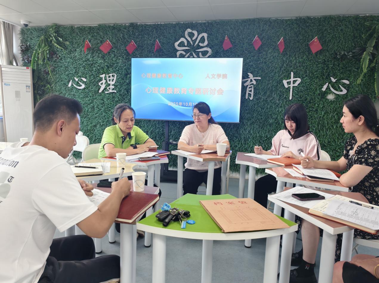本网讯 为深化“三全六专”育人实践,完善心理健康服务体系建设,10月10日,人文学院赴心理健康教育中心,联合开展心理健康教育专题研讨。心理健康教育中心主任金艾裙、人文学院党委副书记余本祺,心理健康教育中心专职教师、人文学院辅导员参加活动。