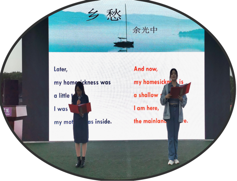 英语系教师党支部立足专业特色,融家国情怀于英语课堂,让外语教学充满“中国味”;深入挖掘英语课程中蕴含的中华优秀传统文化、红色文化资源,用英语讲好中国故事、传播中国声音,在语言教学中巧妙融入思政元素,组织学生开展“用英语讲中国故事”口语广场、“用英语讲中华文化”“用英语讲中国诗词”系列主题活动,培养其家国情怀,实现党建工作与文化育人的同频共振。