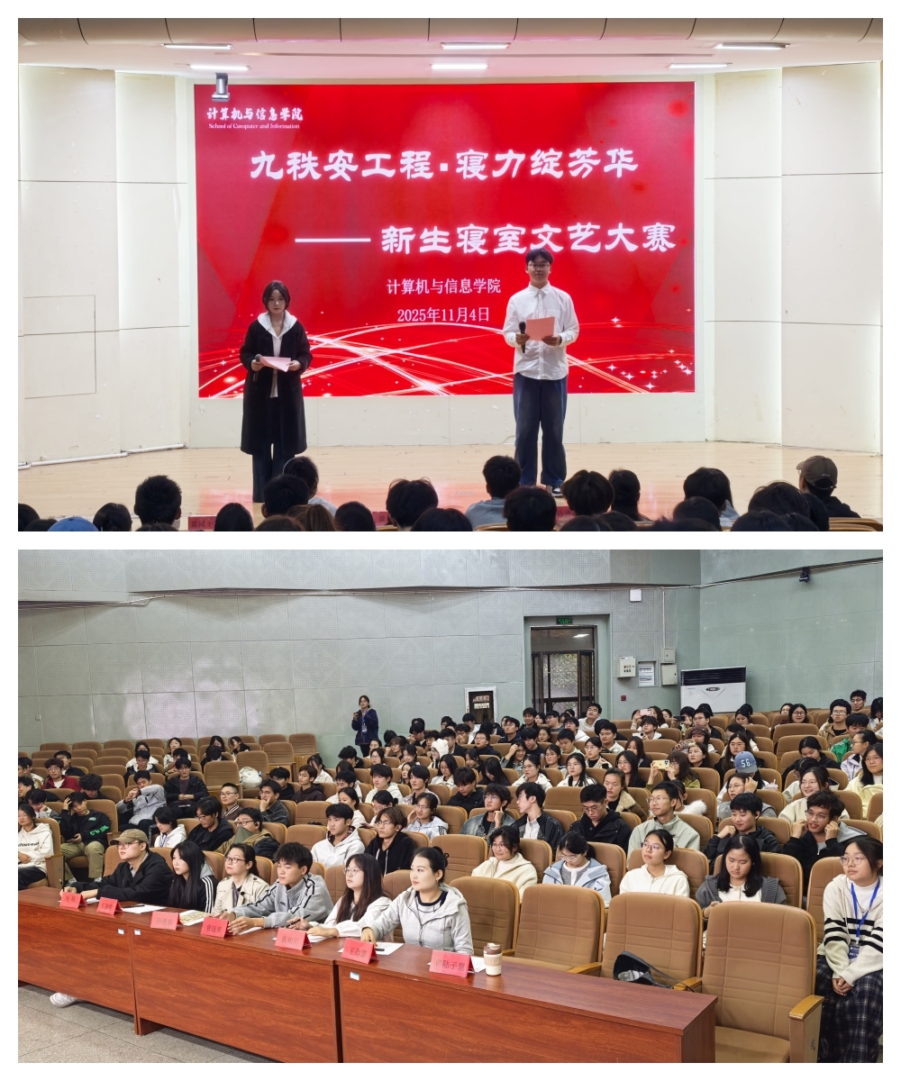 本网讯 为庆祝学校建校90周年,丰富校园文化生活,展现2025级新生青春风采,11月4日,计算机与信息学院新生寝室文艺大赛在校学术报告厅举办。学院党委副书记孙德茹,院团委兼职副书记瞿陆子慧,新生辅导员王诣霏、陈安以及200余名新生代表共同参加了此次活动。