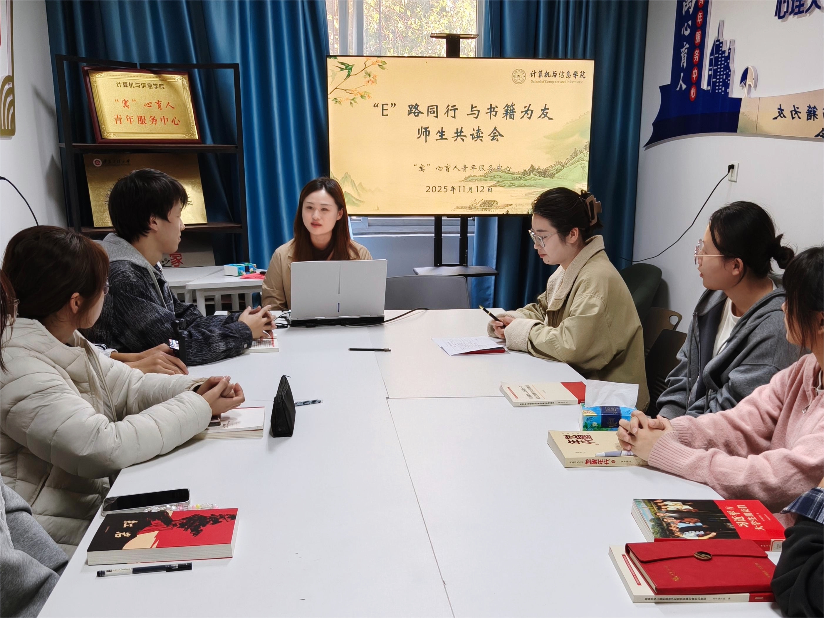 本网讯 11月12日,计算机与信息学院“‘E’路同行,与书籍为友”第五期读书交流分享会在学院“一站式”学生社区开展。本期读书会由学院团委兼职副书记瞿陆子慧主持,学院第四十期入党积极分子培训班班主任周荣凤和学员代表参与活动。