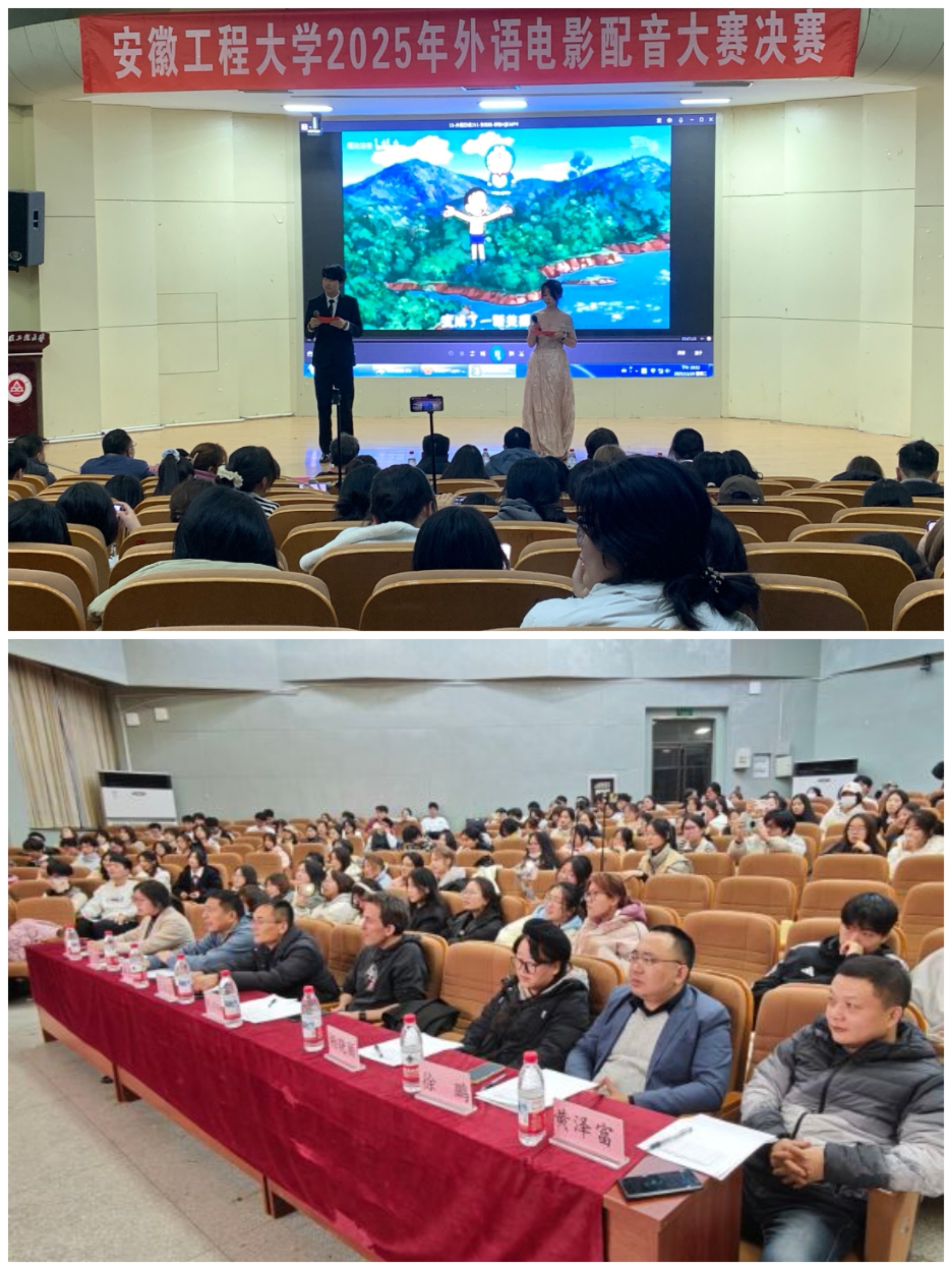 本网讯 11月19日,由外国语学院与教务处联合举办的2025年外语电影配音大赛决赛在学校学术报告厅举行。外国语学院副院长李新国、辅导员及教师代表、参赛选手和各学院学生共计300余人参加活动,线上观看人数达到了10536人。