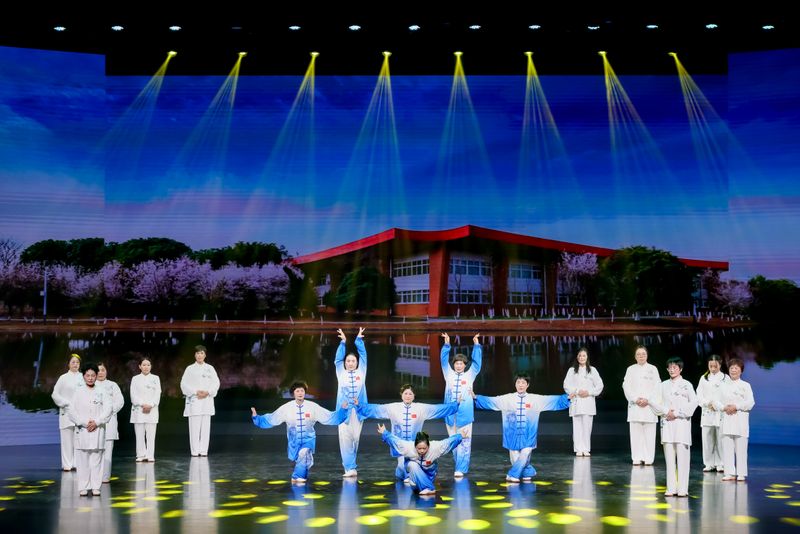 在省歌舞剧院的展演现场,伴随着舒缓悠扬的音乐《我爱你中国》,学员们气定神闲,缓缓起势,动作刚柔并济、行云流水,将中华传统养生文化的精髓与平和豁达的老年心境完美融合。学员们精神矍铄、神态从容,一招一式尽显深厚功底与内在气韵,生动诠释了健康生活理念,现场观众不时报以热烈的掌声。